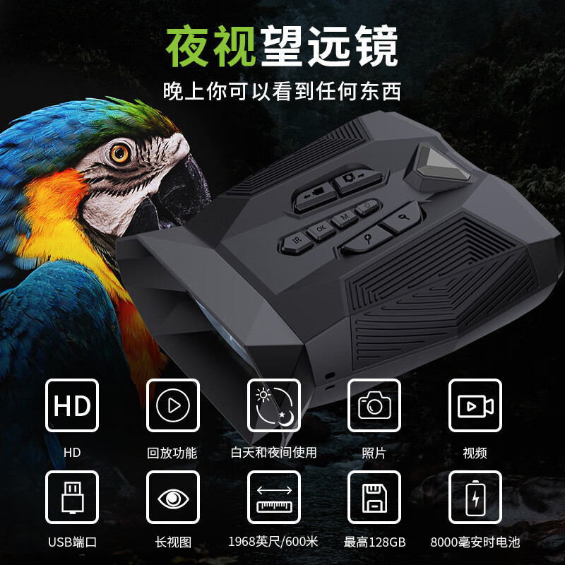 辉夜数码双筒红外夜视仪热成像仪户外军事望远镜野外夜间专用微光全彩 lk300(1000米夜视+20倍变焦 送32G)