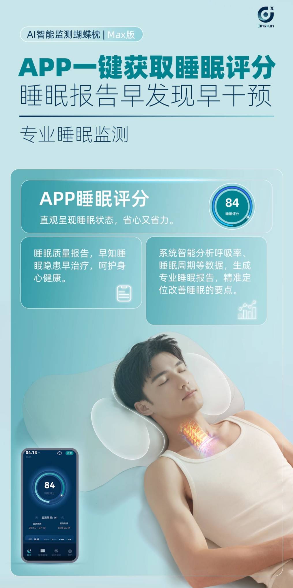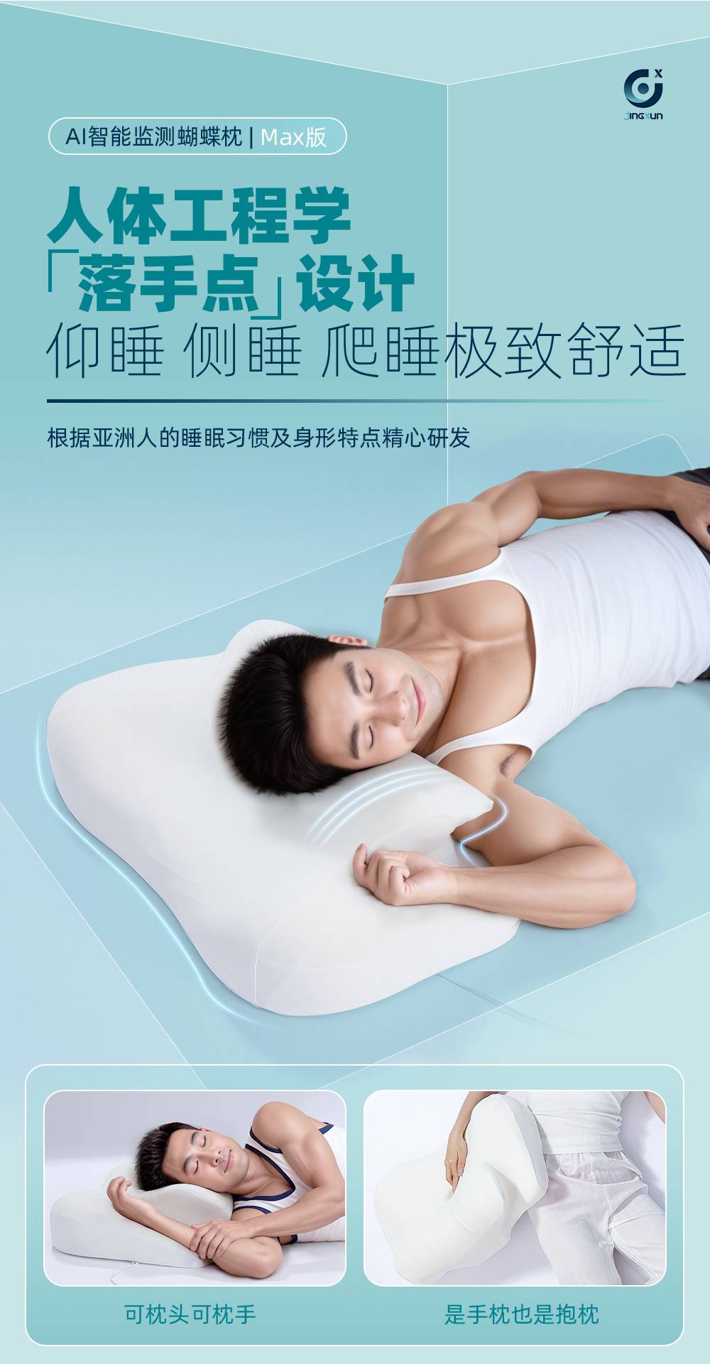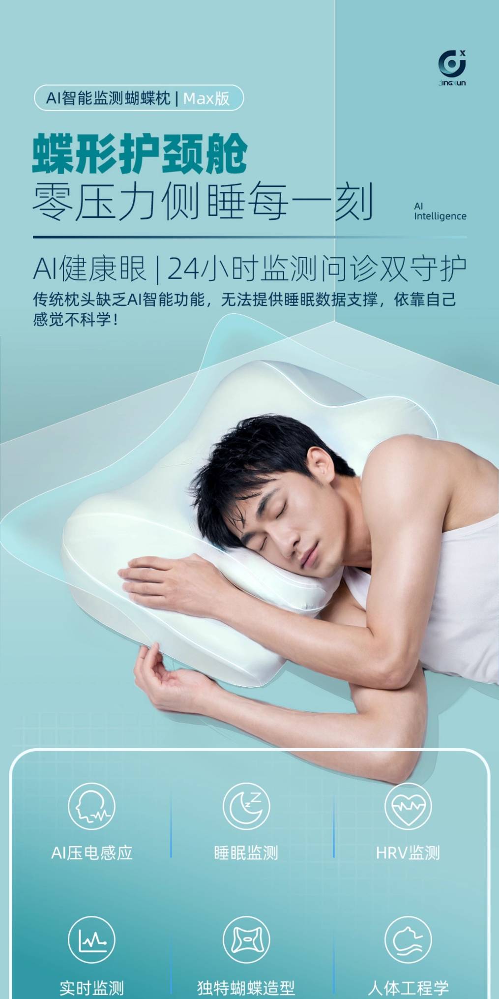精询侧睡枕头护颈椎助睡眠监测打鼾记忆棉枕芯专用止鼾男家用颈枕