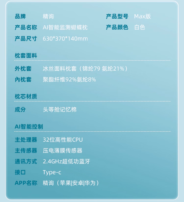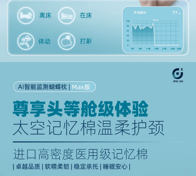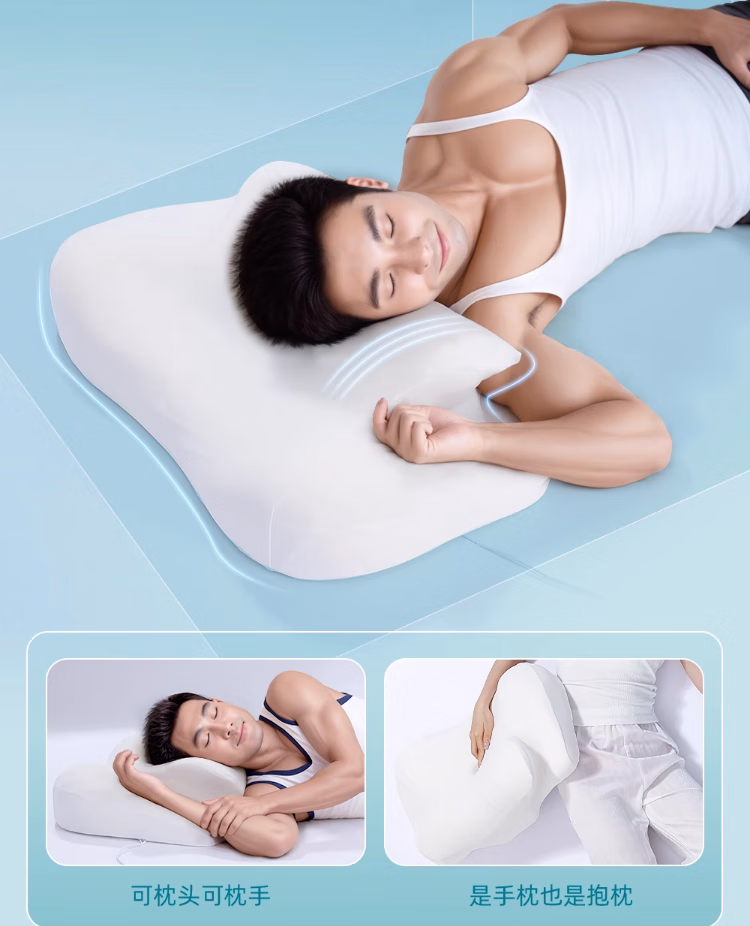 精询胖体型专研 6D强支撑记忆棉枕头9cm加高护颈枕防打鼾蝶形透气网布 高大男性专用枕芯 A类