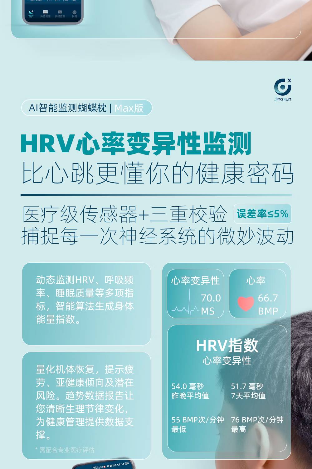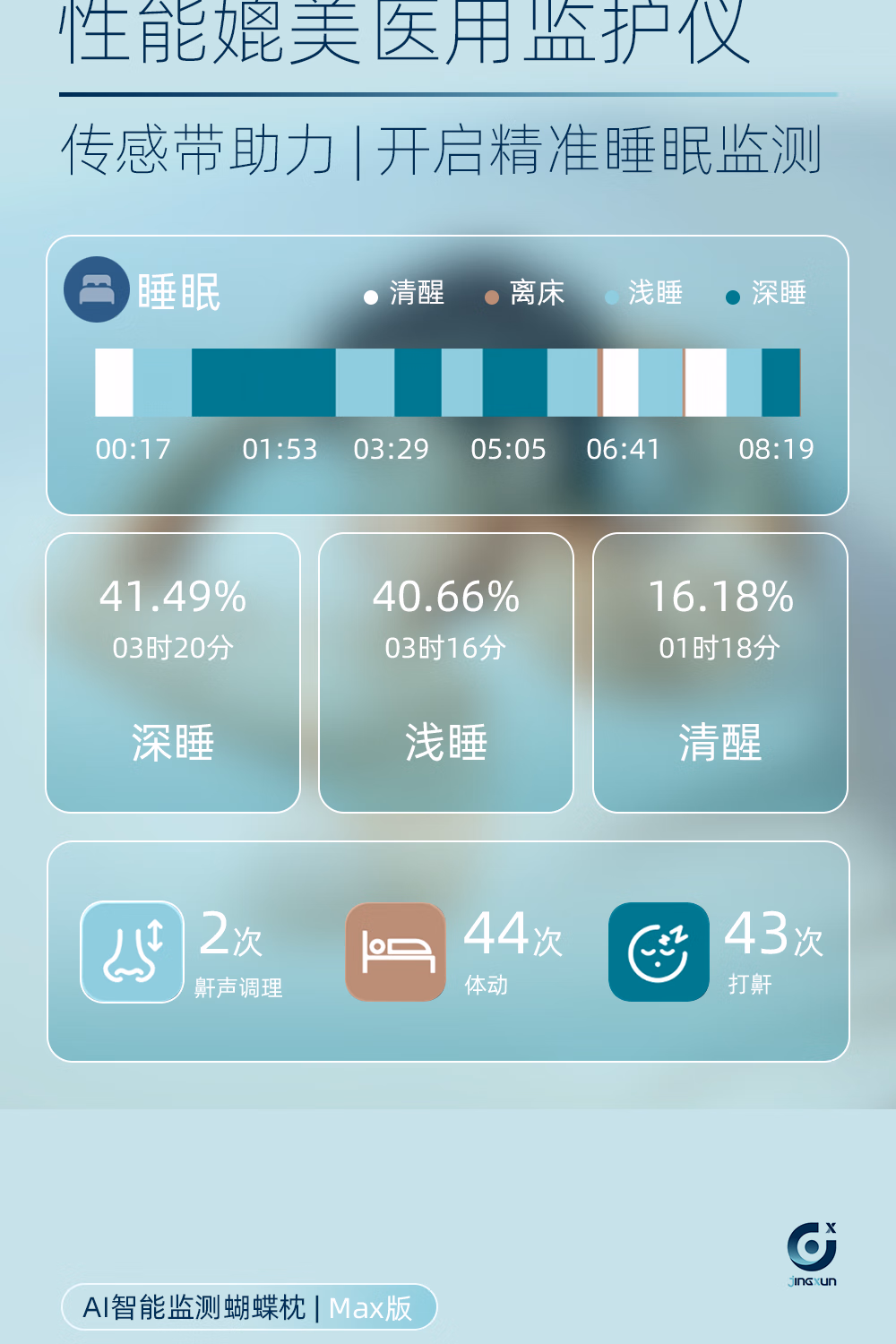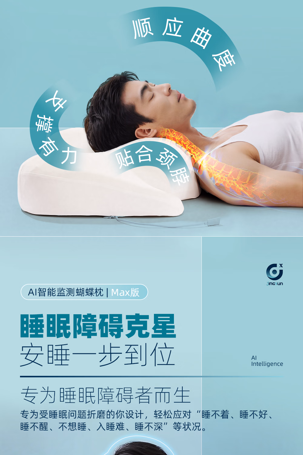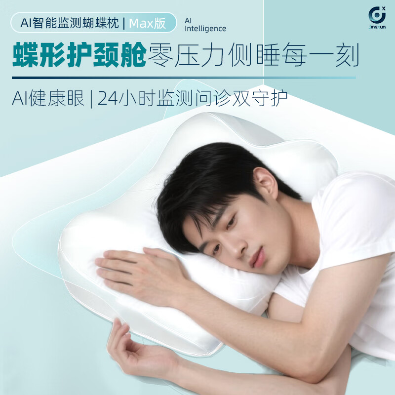 精询智能枕头AI助深度睡眠记忆棉护颈椎无感心率血氧监测枕芯侧睡枕头 男款特高蝴蝶枕
