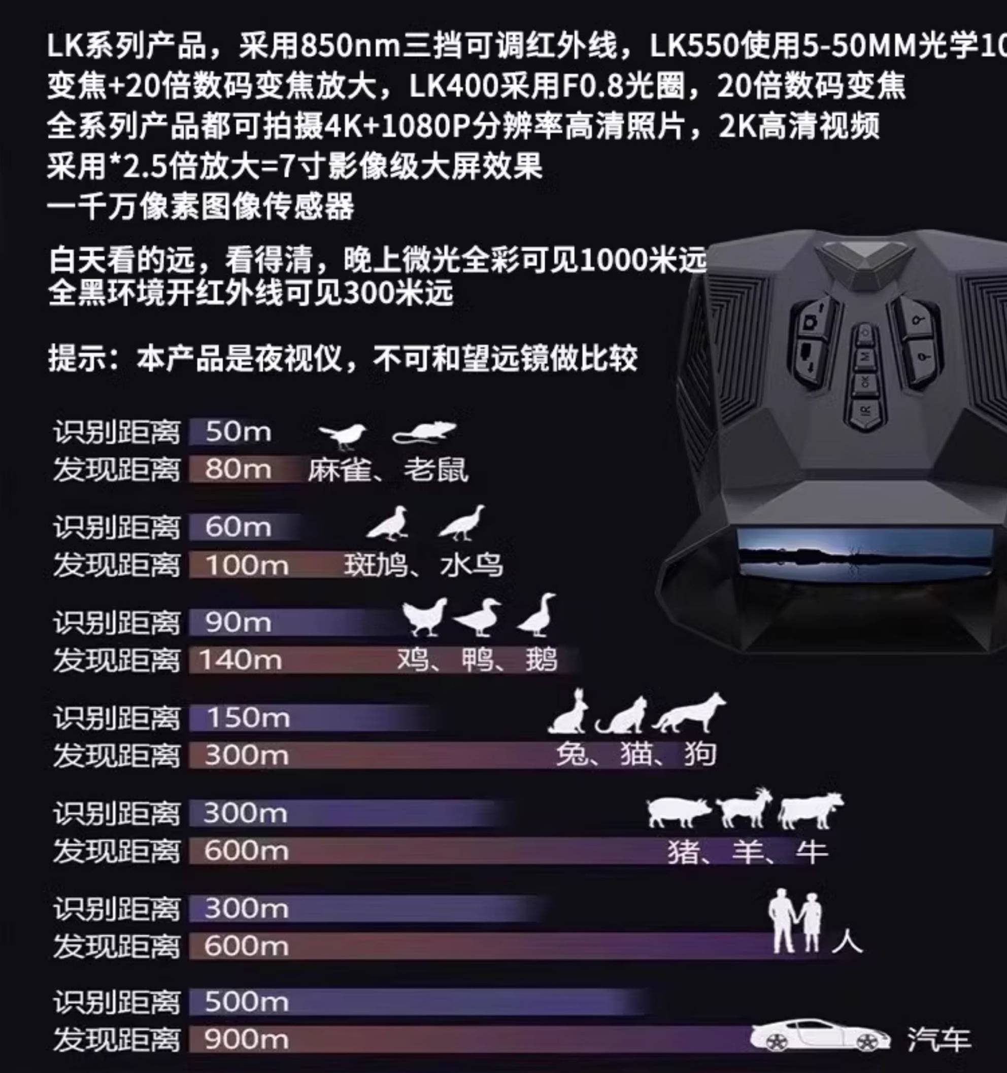 辉夜数码双筒红外夜视仪热成像仪户外军事望远镜野外夜间专用微光全彩 lk300(1000米夜视+20倍变焦 送32G)