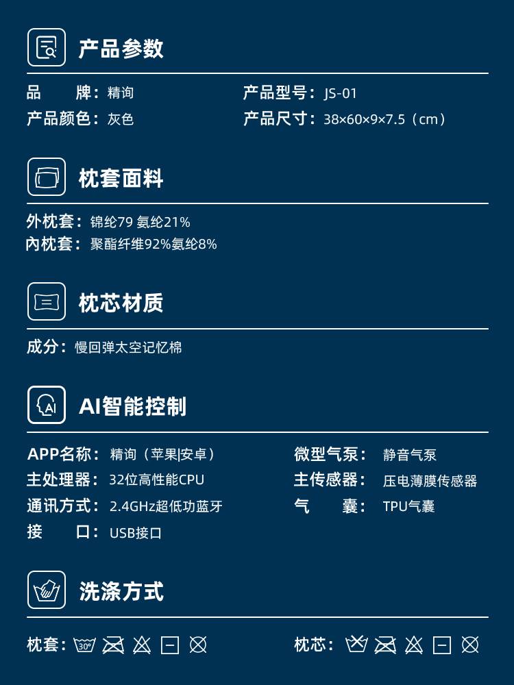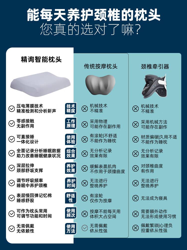 精询记忆棉枕头护颈枕助睡眠深睡自动升降高低止鼾神器侧睡监测枕