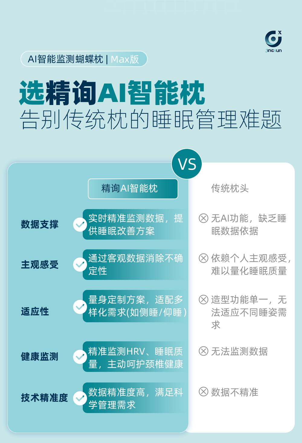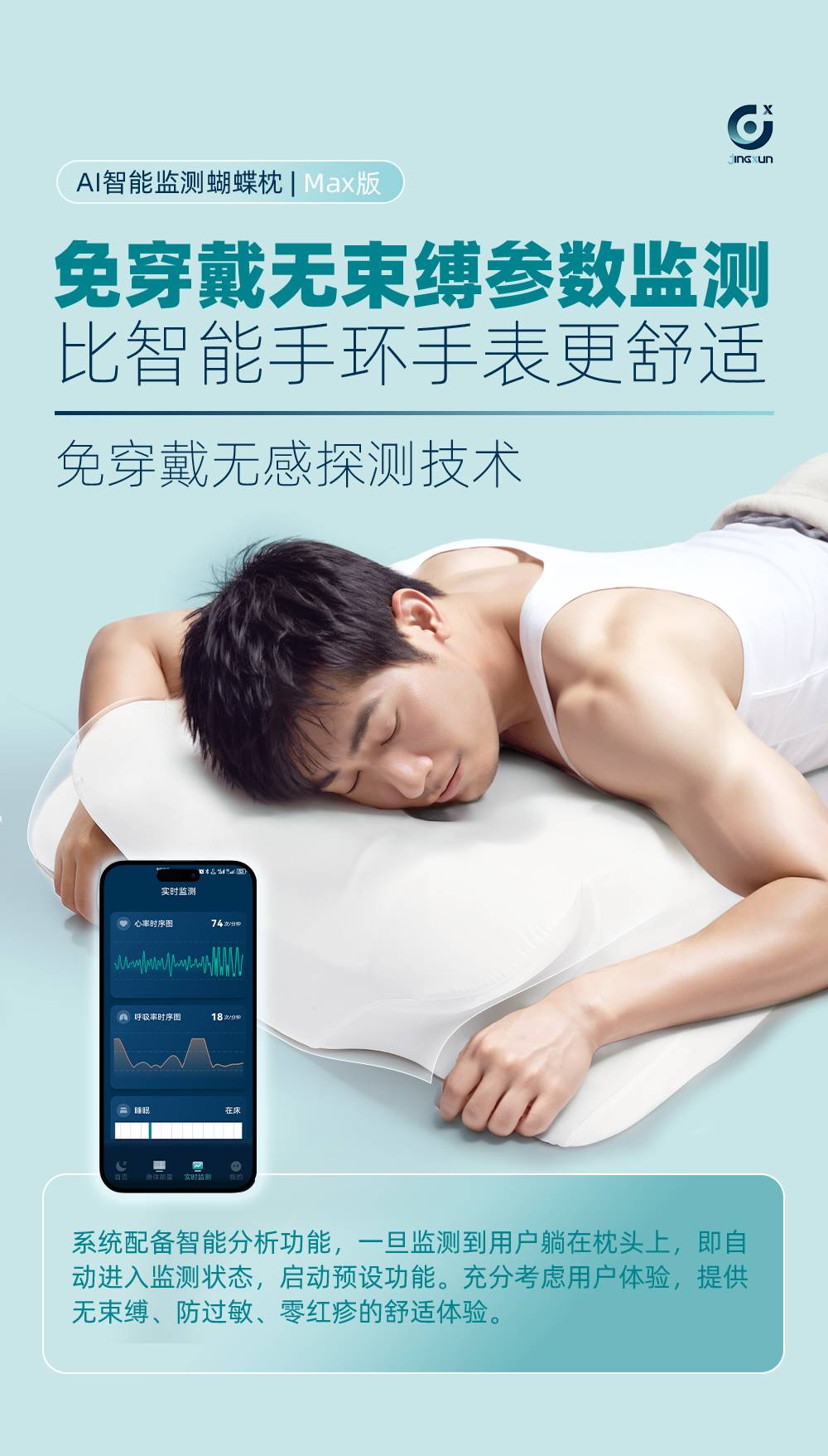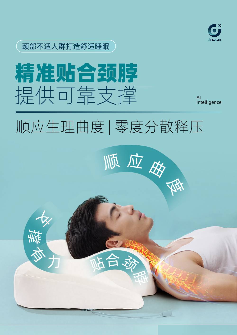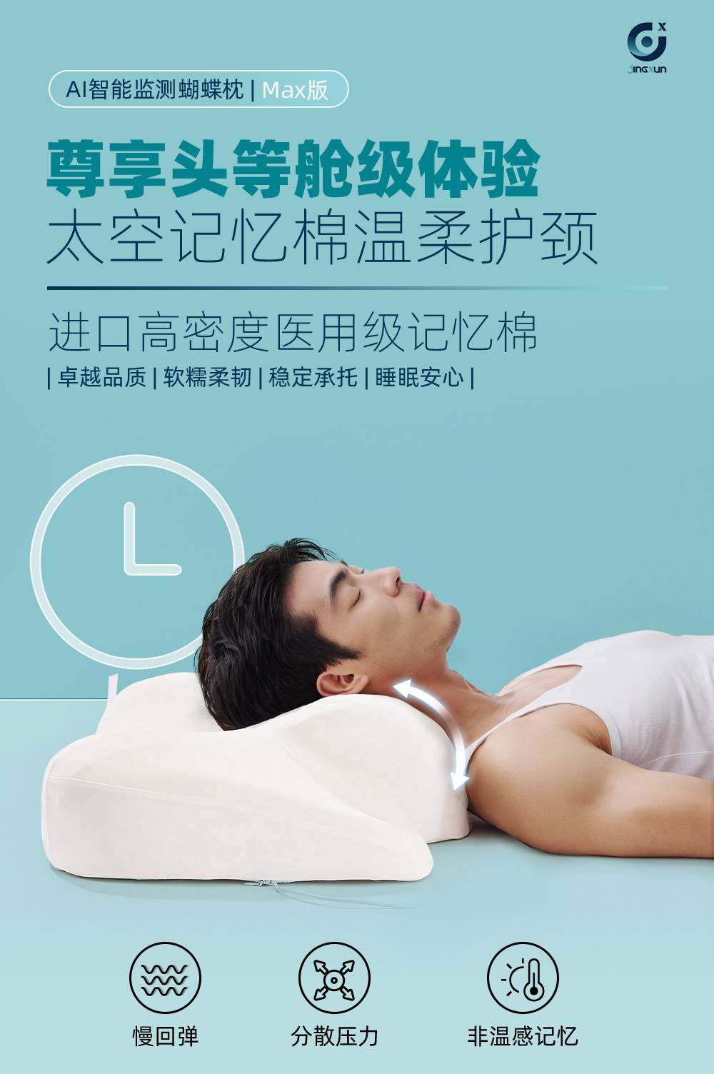 精询侧睡枕头护颈椎助睡眠监测打鼾记忆棉枕芯专用止鼾男家用颈枕