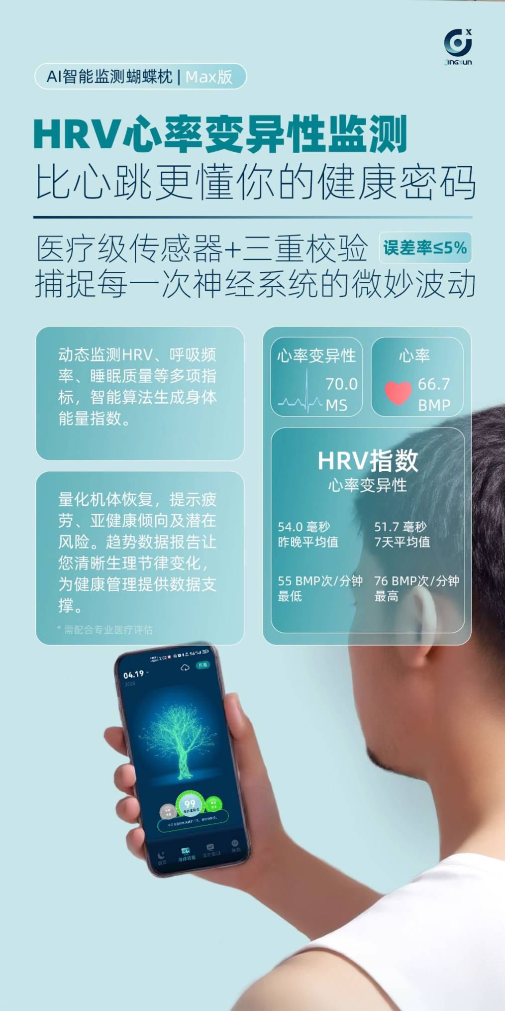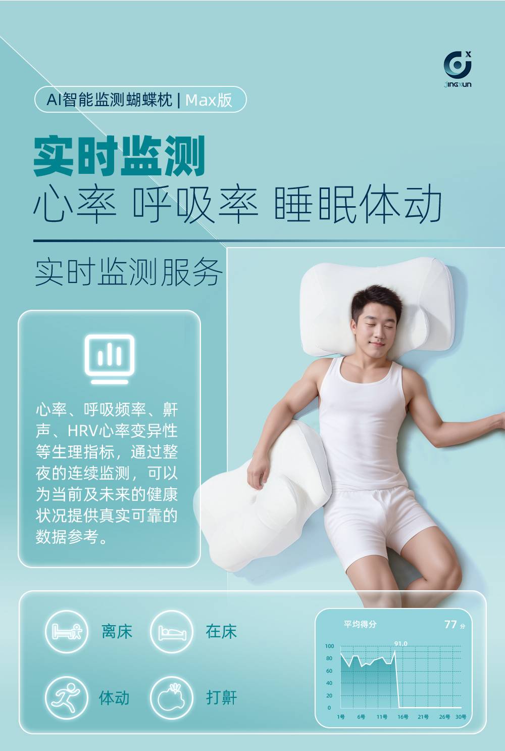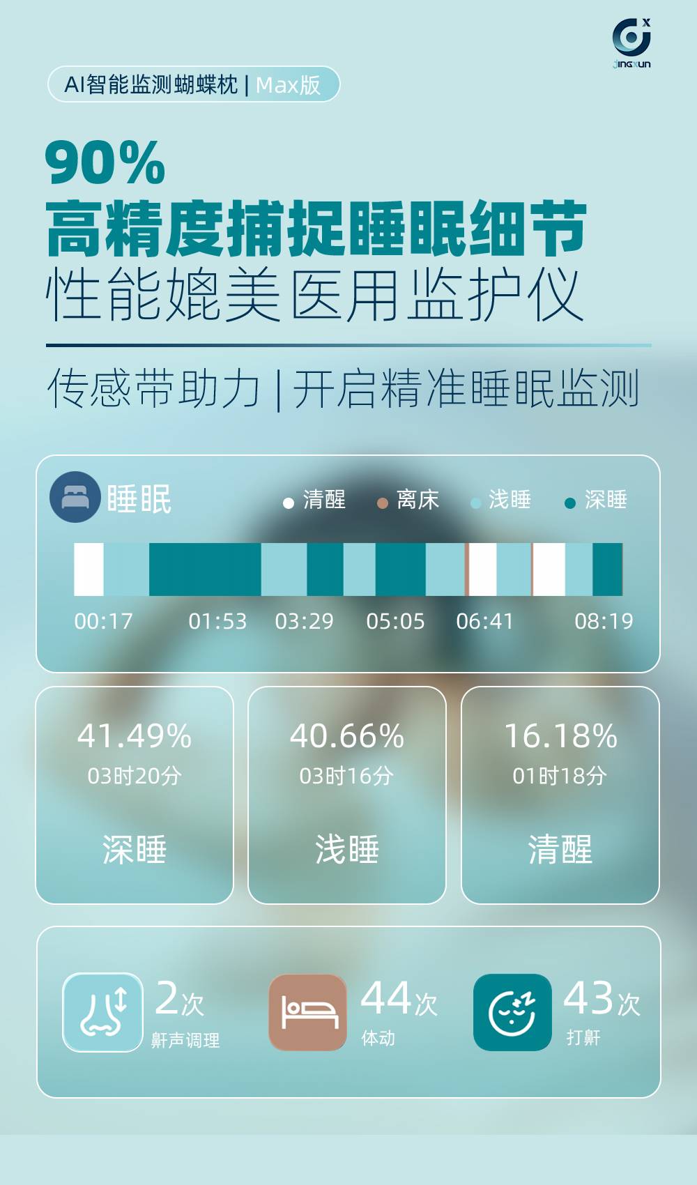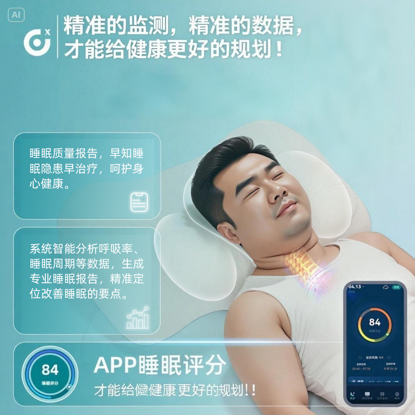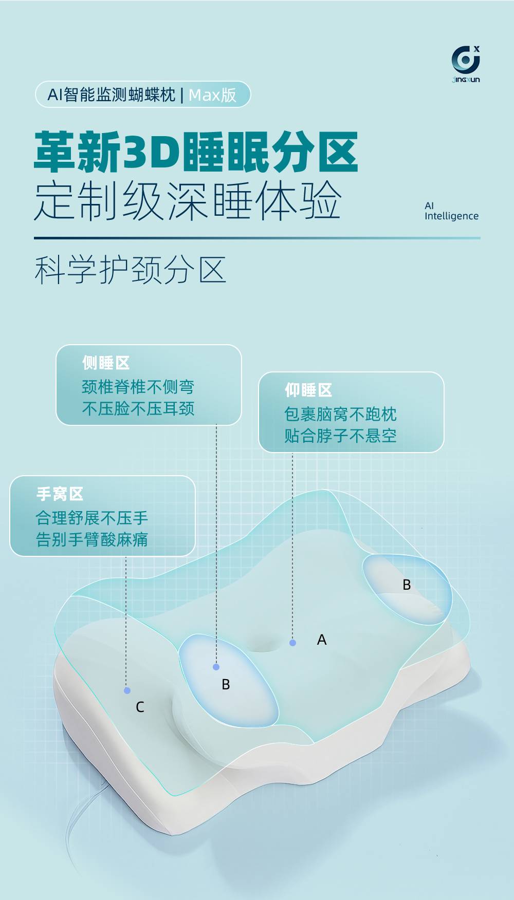 精询侧睡枕头护颈椎助睡眠监测打鼾记忆棉枕芯专用止鼾男家用颈枕