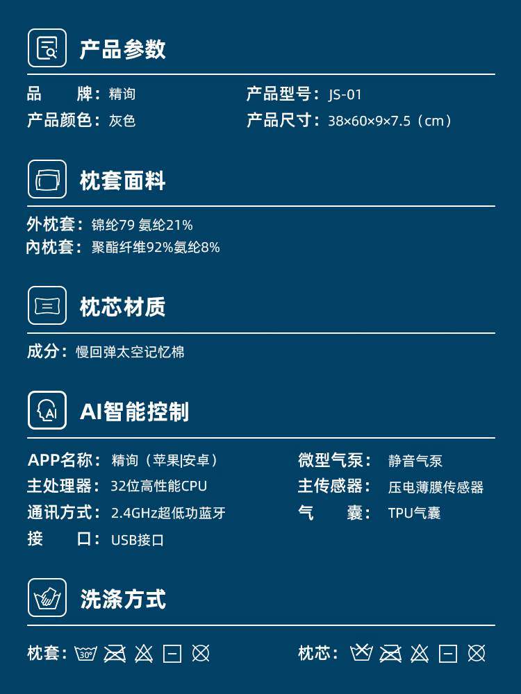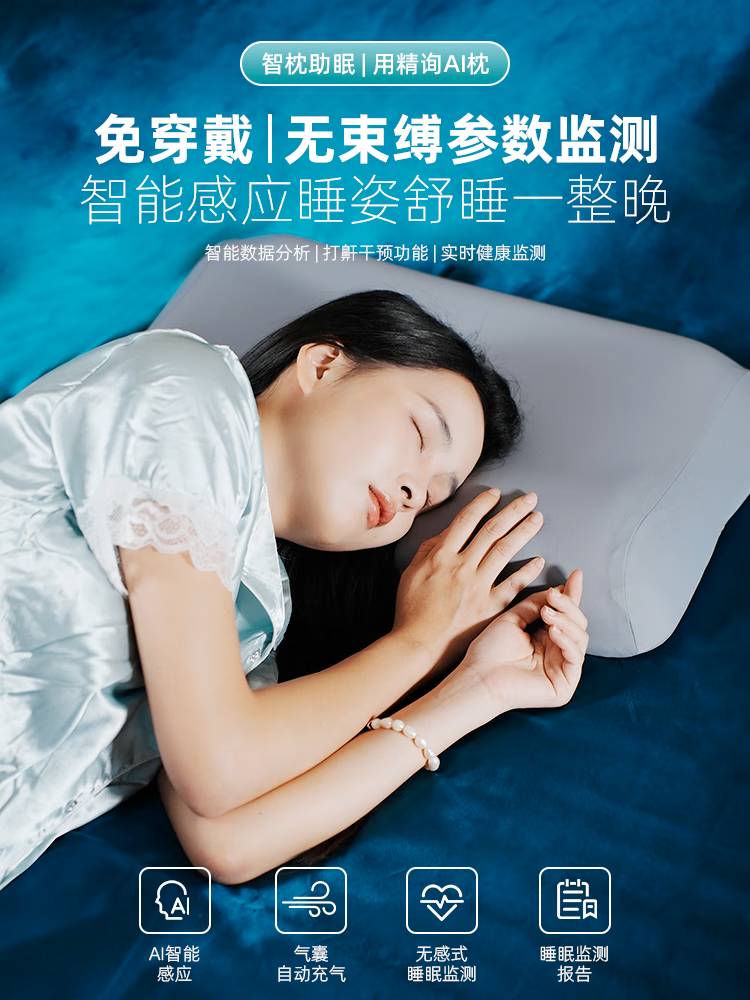 精询智能枕头防打呼噜AI助深度睡眠全自动揉捏止鼾枕乳胶枕监测心脑枕 睡眠监测 智能调节