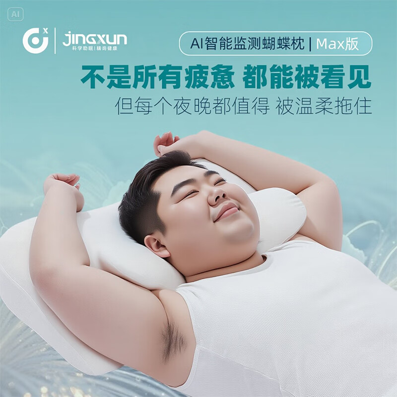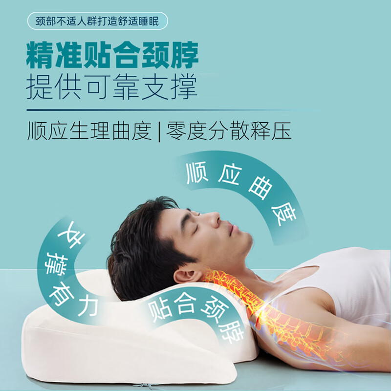 精询胖体型专研 6D强支撑记忆棉枕头9cm加高护颈枕防打鼾蝶形透气网布 高大男性专用枕芯 A类
