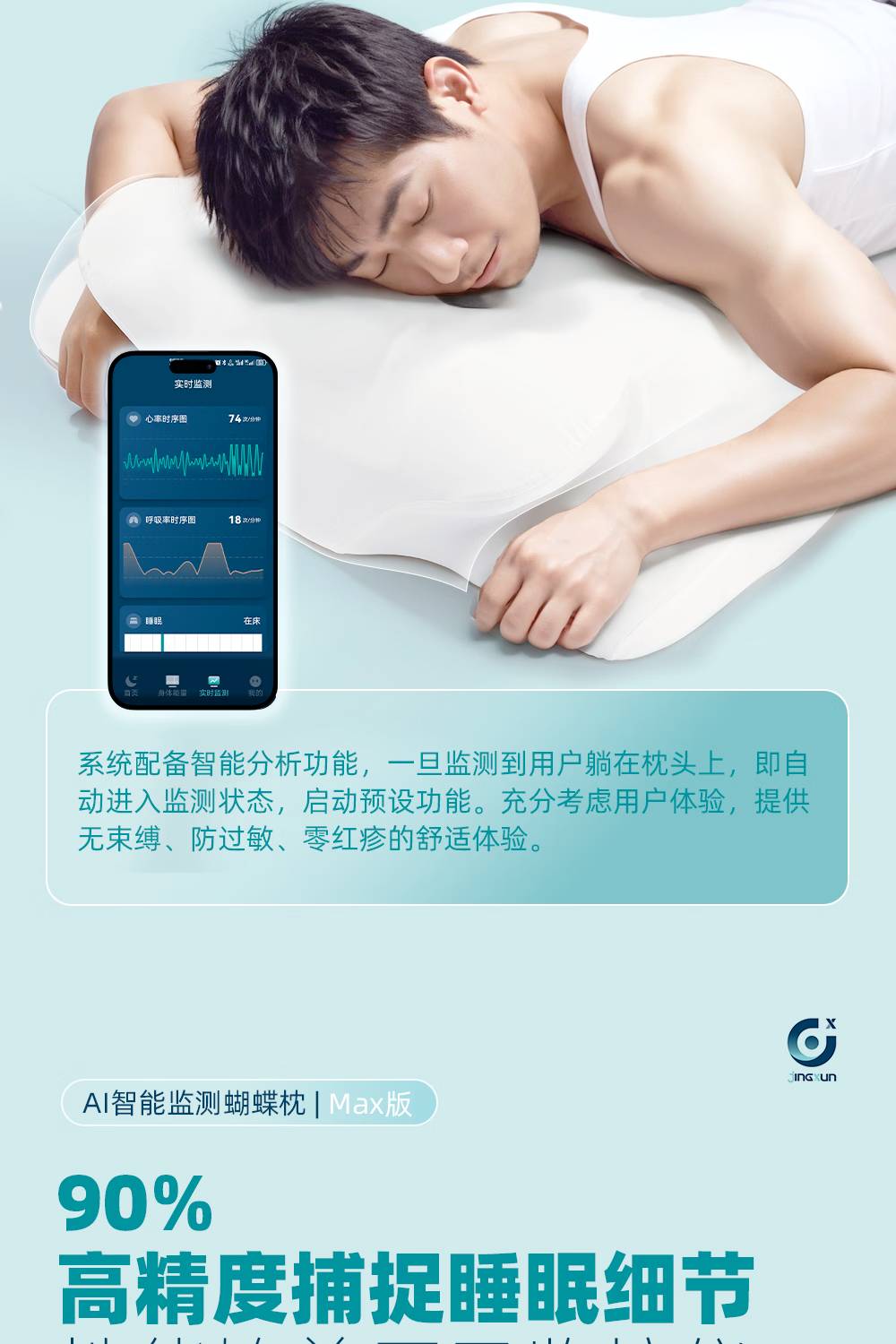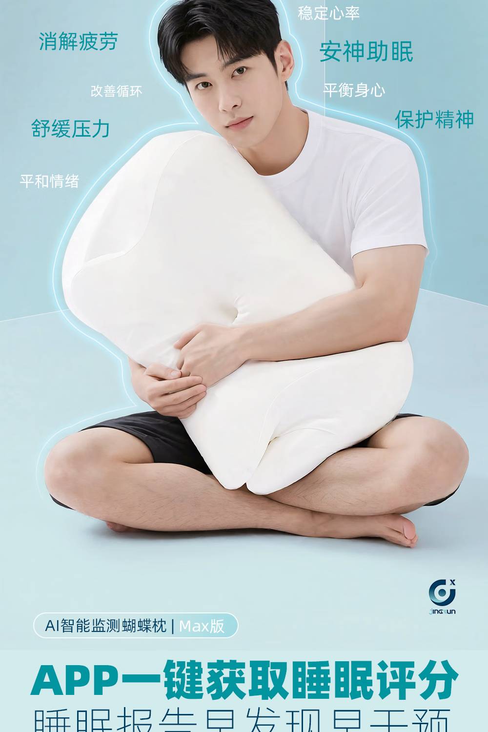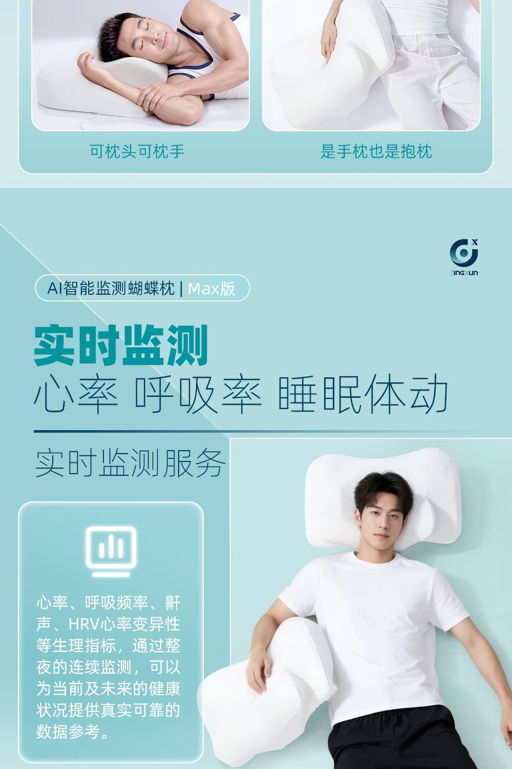 精询智能枕头AI助深度睡眠记忆棉护颈椎无感心率血氧监测枕芯侧睡枕头 男款特高蝴蝶枕