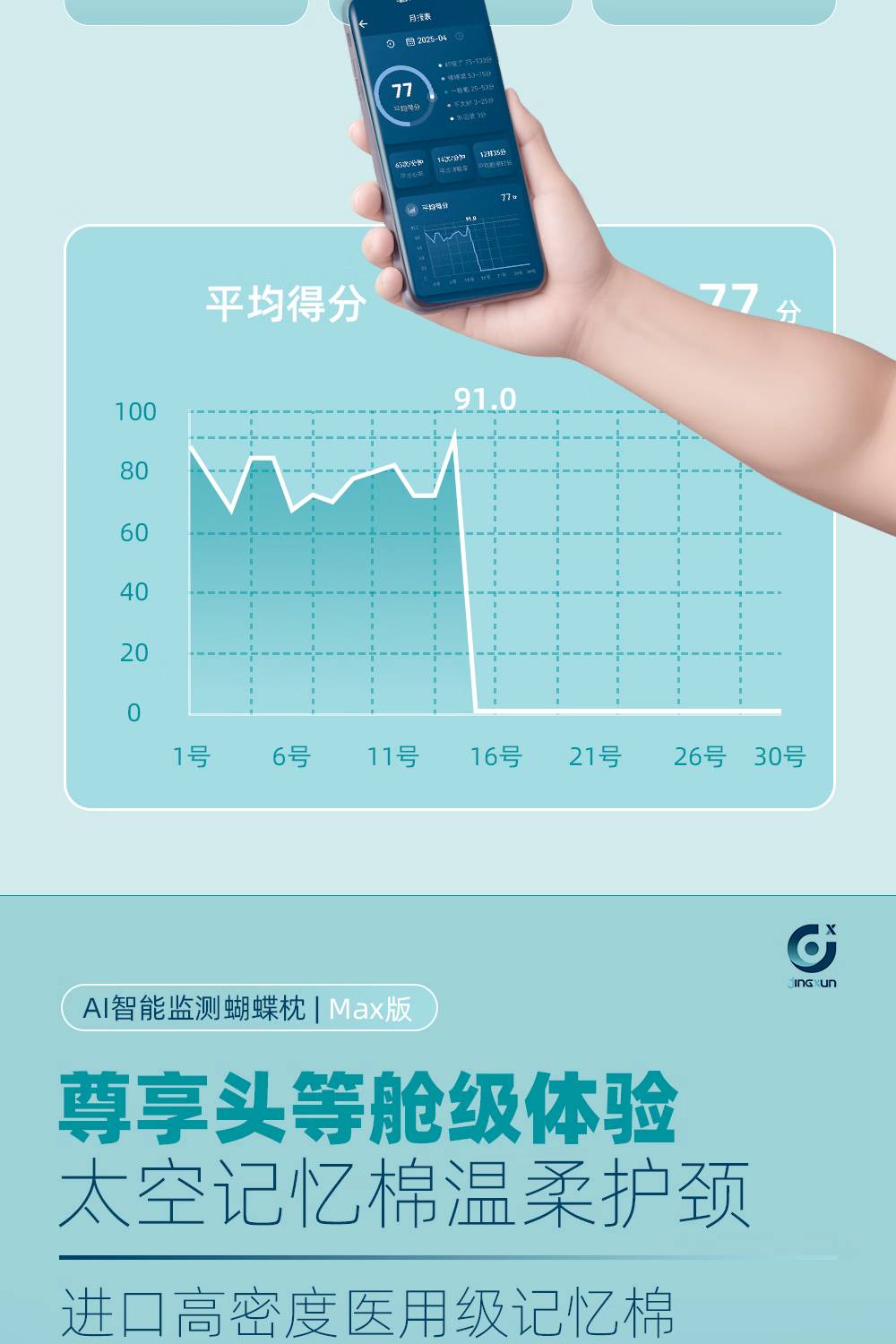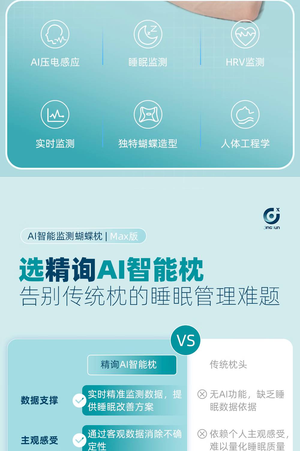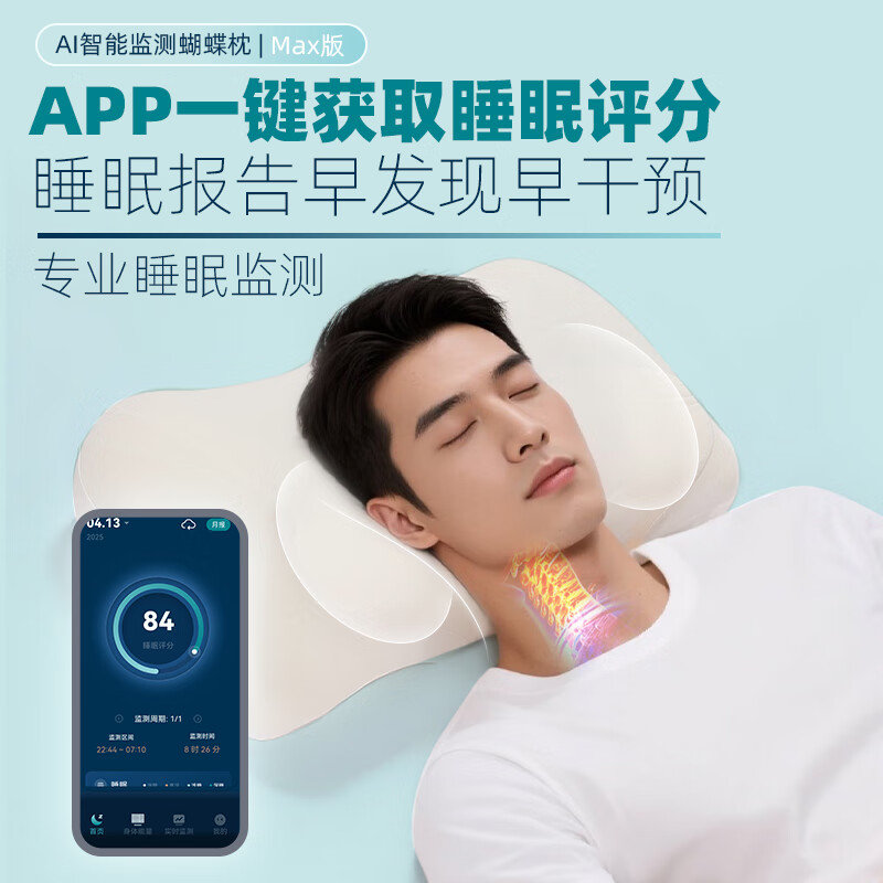 精询智能枕头AI助深度睡眠记忆棉护颈椎无感心率血氧监测枕芯侧睡枕头 男款特高蝴蝶枕